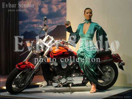 Мотоцикл, авто мото, авторское фото фон, обои, заставка, картинка, тема в цифровом формате JPG, фоновый рисунок для рабочего стола монитора ПК имеющего разрешение экрана 1024х768px. Высокое качество изображения позволяет успешно установить его на компьютер, имеющий монитор большего размера. Краткая история создания мотоцикла. Годом создания мотоцикла признан 1885-й, когда Готлиб Даймлер в Германии построил машину для верховой езды, представляющую собой велосипед с деревянной рамой и ременной передачей, с 1-цилиндровым бензиновым двигателем рабочим объемом 264 кубических см, развивающим мощность 0,5л.с., что позволило достигать скорости 12км/ч. Первый мотоцикл в Англии построил Э. Батлер в 1887г. во Франции — Ф. Милле, а в Италии — Э. Бернарди в 1893г. Изобретение же мотоцикла пробудило в человеке постоянное стремление к установлению рекордов скорости. Особое отличие первого периода (1898-1902 гг.) от последующих было в том, что выпускались лишь трехколесные мотоциклы -трицикы. Трицикл —трехколесный гоночный мотоцикл, специально построенный для рекордных заездов. На трициклы устанавливали огромные по габаритам двигатели, в основном 2-х цилиндровые, с рабочим объемом около 4-х литров. При таких допусках трициклы делились на классы не по рабочему объему двигателя, а по массе. С начала второго периода (1903—1929 гг.) на смену трициклам пришли двухколесные мотоциклы. 8 июля 1904 г., в чешском городе Пакове группой энтузиастов мотоспорта из нескольких стран была основана международная федерация мотоциклетных клубов —FICM, предшественница нынешней FIM. Создание ее было продиктовано тем, что к тому времени определилась специфичность соревнований и установилась четкая терминология, разделявшая мотоциклы и автомобили. Ранее утвержденная классификация мотоциклов по массе в 1910 году была заменена на классификацию по рабочему объему двигателя, предельная цифра составляла 1000 см3. В третьем периоде (1929—1937 гг.) на смену мотоциклам с ременной передачей пришли мотоциклы с карданным валом. Кроме мотоциклов с 2-х цилиндровыми V-образными двигателями, появились модели 2-цилиндровых оппозитов. Двигатели обоих типов оснащались компрессорным нагнетателем. Четвертый период (1951-1962 гг.) Рекордные мотоциклы этого периода имели сигарообразную форму, 2-х цилиндровые двигатели были с наддувом и без него. В качестве топлива служила смесь метанола с нитрометаном. Рабочие объемы двигателя колебались от 500 до 1000 см3. Скоростной итог абсолютных рекордов к 1962 году перевалил за отметку 350 км/ч. Вкус свободы и жизни. Вера с свои силы и полное доверие своему «железному другу» -все это ощущается, когда Вы едете в даль на мотоцикле. Про таких людей говорят, что у них скорость в крови. Для мотоцикла не существует дорожных заторов. На авторской заставке представлена позирующая девушка в зеленом платье на спортивном мотоцикле. Сочетание женской нежности и чувство силы железного коня на картинке создают ассоциативный симбиоз, приятно действующий на кору головного мозга байкера, любящего скорость и свободу, развивающую двухколесным другом на дорогах всего мира