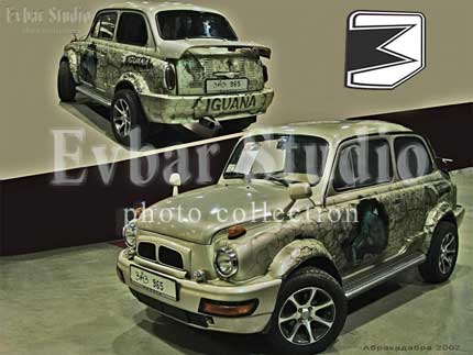 ЗАЗ - 965 репликар, 1962 года, авто мото, авторское фото фон, обои, заставка, картинка, тема в цифровом формате JPG, фоновый рисунок для рабочего стола монитора ПК имеющего разрешение экрана 1024х768px. Высокое качество изображения позволяет успешно установить его на компьютер, имеющий монитор большего размера. Запорожский автомобилестроительный завод Украина, Запорожье. Начало истории Запорожского автомобильного завода началось в 1863 году с 4 небольших мастерских колониста Я. Коопа, выпускающих сельскохозяйственные машины и оборудование. После революции в 1921 году завод начал работу под именем "Коммунар" и продолжал выпуск сельскохозяйственных машин. 18 июня 1959 года вышел опытный автомобиль ЗАЗ-965 "Запорожец". В 1988 году начался выпуск автомобилей "Таврия". Кузов Автомобиля ЗАЗ 965: количество дверей 2, количество мест -4, длина автомобиля 3330(мм), ширина автомобиля 1395(мм), высота автомобиля 1450(мм), расположение двигателя -сзади, продольно, объем двигателя 746(см3), тип двигателя -кол-во цилиндров V-4, система клапанов -2, мощность (л/с) ЗАЗ 965 23/4000, тип топлива -Бензин А-76. Трансмиссия автомобиля: привод ЗАЗ 965 -задний привод, механическая коробка передач -4, передняя подвеска -торсион, задняя подвеска -винтовая пружина. Объем топливного бака 30 литров. Максимальная скорость -90 км/час. Средний расход топлива (100 км) -5.5 литров. Распахиваются двери на очень большой угол, а стопором служит ремешок. Пол у машины низкий, сиденье такое же низкое и крепится прямо в днище без салазок и регулировок. Приборы и органы управления "Запорожца" простейшие: указатель поворота -тумблер. Щелчок влево -включен левый поворотник, щелчок вправо -включен правый. Из приборов спидометр, указатель уровня топлива и датчик температуры масла. Мотор воздушный. Подсос масла на центральном тоннеле, рядом с ручником. Заводится "Запорожец" ручкой между сиденьями, вытягивая ручку подсоса вверх, после чего заводится ключом. Ездит "Запорожец" иногда даже быстро. Но на скорости под 100 км/ч масло у него кончается километров через 150. Передняя торсионная подвеска жесткая, а задняя наоборот довольно мягкая. Из-за этого "Запорожец" ведет себя вихляво и неуверенно. Если на большой скорости на ухабе зад подпрыгивает с отрывом от дороги, задние колеса складываются, и машина заваливается на бок. Зато машине нет равных на русском проселке. Он ползает даже по серьезной грязи. Самая сложная деталь любого "Запорожца" -печка. Как она работает, почти никто толком не знает. Эта модель Запорожца в народе называлась «Горбатый». На заставке изображен горбатый Запорожец – ЗАЗ –965, репликар, 1962 года выпуска, со старым логотипом завода изготовителя, вид сбоку и сзади